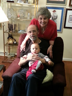 Grammy and Grandy showed Riley off to everyone and we think the whole city knows who he is and has seen his picture already. Grammy even came over to babysit so Chris and I could go out to dinner with Eric and Natalie! She said that she watched the video monitor the whole time and that it was a better show than anything that was on tv.